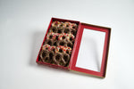 Our beautiful gold and red scroll gift box features 12 rich dark and creamy milk chocolate-covered pretzels, each delicately adorned with pretty red and gold sprinkles and gold nonpareils.
