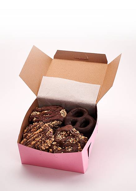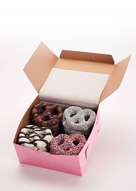 Design your very own 16 piece pretzel collection! Finished in our signature pink bakery box with black ribbon