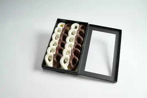 Classic elegance meets delicious crunch in our 12-Piece Black & White Pretzel Gift Box.